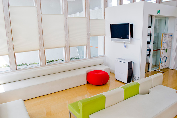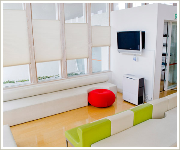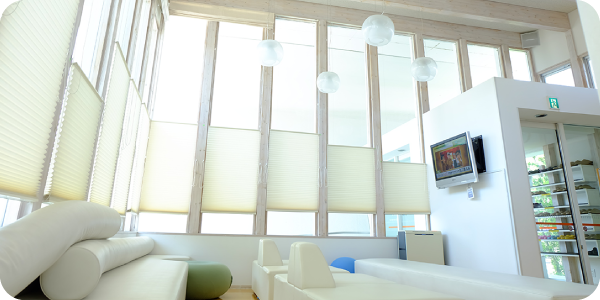 待合室は少しでも患者さんにリラックスしていただけるよう、大きくゆったりとした空間に。。
